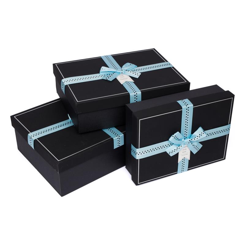 Размеры коробок в наборе: 24.5 x 17 x 6.5 см; 29 x 21 x 9 см; 33.5 x 25 x 11.5 см