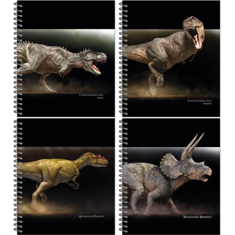 Тетрадь A5  96л клетка на гребне Полином картонная обложка сплошной УФ-лак 'Динозавры' 4 дизайна