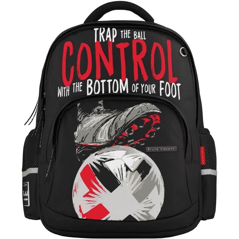 Рюкзак BrunoVisconti® классический черный с эргономичной спинкой Рюкзак школьный серии Junior «FOOTBALL.BLACK AND WHITE» ТМ BRUNO VISCONTI отличается мягкими боковыми и передними стенками при эргономичной посадке. Для его производства использовалась ткань premium качества: водонепроницаемая, морозостойкая, с повышенной износостойкостью, грязеотталкивающая плотностью 900 DEN. Благодаря сложнейшим современным технологиям нанесения на ткань рюкзак украшает авторский дизайн, соответствующий последним трендам. Плотная фирменная подкладка BRUNO VISCONTI идеально сочетается с дизайном и цветом самого рюкзака. Двунаправленные реверсивные надежные 8-мм молнии с 5-см пуллером на замках позволяют легко открывать и закрывать рюкзак. Вместительный рюкзак имеет большое отделение для тетрадей и учебников с потайным карманом и отделение для тетрадей с органайзером для канцтоваров. Комфорт и функциональность обеспечивают: эргономичная, вентилируемая, с анатомическими вставками спинка; широкие регулируемые лямки анатомической формы; большое отделение для тетрадей и учебников; отделение для тетрадей с органайзером; ручка-подвес из надежного материала, устойчивого к истиранию с усиленным креплением, выдерживающая большие нагрузки; мягкая эргономичная ручка; по два светоотражающих элемента на лямках и боковых карманах; усиленное дно рюкзака оснащено резиновыми ножками, защищающими от загрязнения и влаги; кольцо для брелока/бейджика; фиксатор лямок; потайной карман для магнитной карты; два боковых кармана.