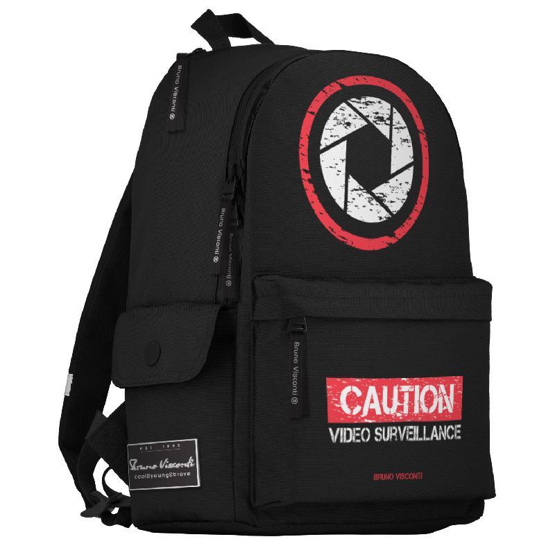 Рюкзак BrunoVisconti® молодежный черный «СКРЫТАЯ КАМЕРА» Арт. 12-003-102/01 В производстве рюкзака «СКРЫТАЯ КАМЕРА» от Bruno Visconti использовались сложнейшие современные технологии нанесения на ткань. Рюкзак износостойкий и прослужит долго благодаря водонепроницаемой, морозостойкой и грязеотталкивающей ткани плотностью 900 D. Надежные, ВОДОНЕПРОНИЦАЕМЫЕ двунаправленные реверсивные 10-мм молнии с 5-см пуллером на замках удобны в эксплуатации, позволяют легко открывать и закрывать рюкзак. Износостойкая фирменная подкладка BRUNO VISCONTI тщательно подобрана и сочетаетя с дизайном и цветом рюкзака. Комфорт и функциональность рюкзаку обеспечивают: мягкая спинка; широкие регулируемые лямки с усиленным креплением и светоотражающими элементами; ручка-петля; фронтальный карман на молнии, два боковых кармана с клапаном на кнопке, верхний потайной карман на молнии для мелочей; основное отделение с карманом на молнии и двумя открытыми карманами, боковой потайной карман.