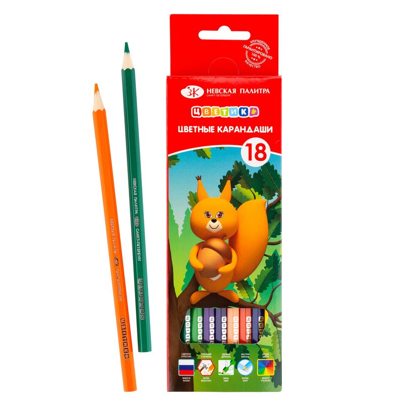 Карандаши  18цв Невская палитра Цветик в картонной коробке