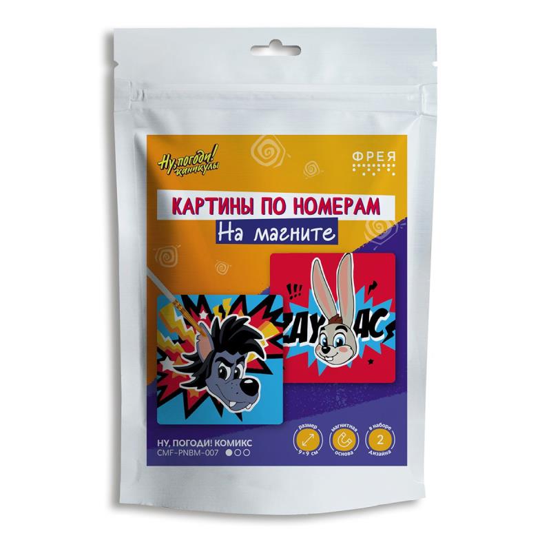 Картина по номерам на магните 9х9см 2шт Фрея Союзмультфильм 'Ну, погоди! Комикс'