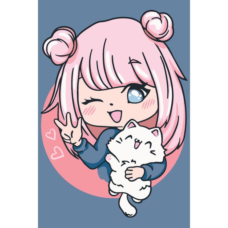 Картина по номерам картон/акрил 20х30см Фрея 'Анимешка с котиком'