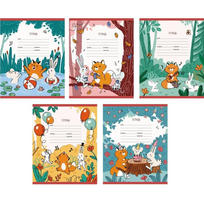 Тетрадь A5  12л линейка на скрепке Listoff® картонная обложка выборочный лак блестки 'Праздник в лесу!' 5 дизайнов