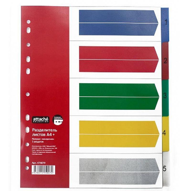Разделители цифровые 1- 5 A4+ пластиковые цветные Attache Selection с титульным листом