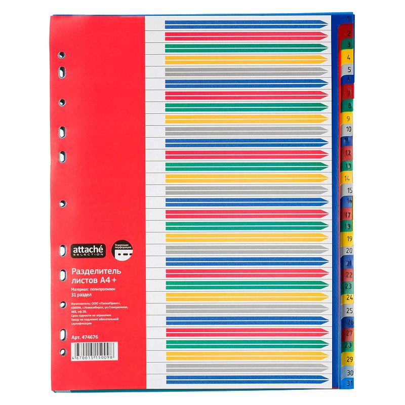 Разделители цифровые 1-31 A4+ пластиковые цветные Attache Selection с титульным листом