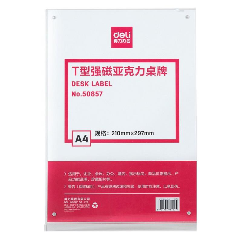 Вертикальный двухсторонний настольный держатель для таблички Deli с магнитным креплением позволяет размещать постеры и другие демонстрационные материалы формата А4.