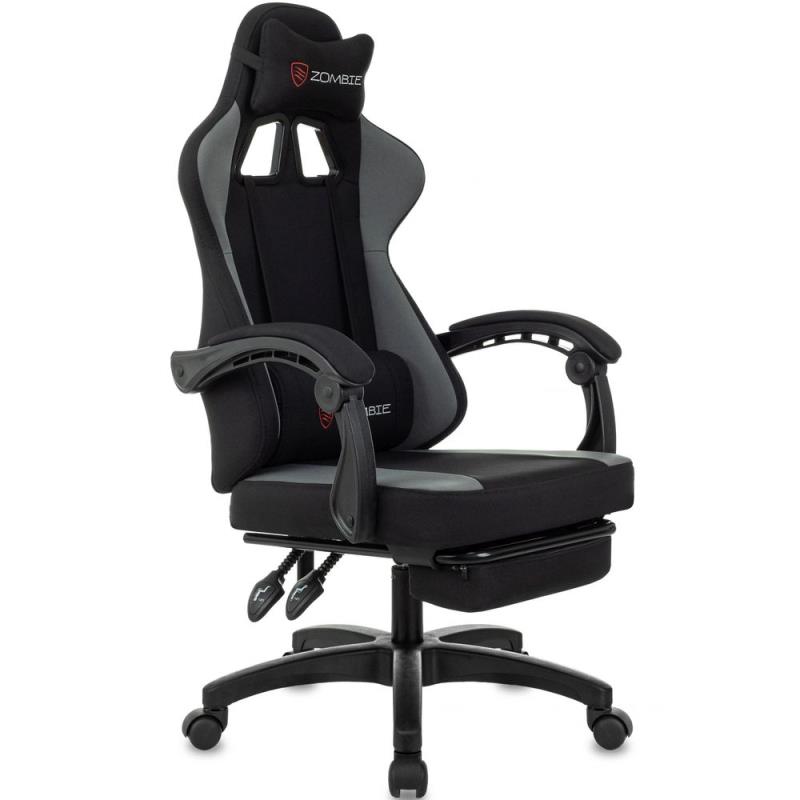 Кресло игровое Zombie Weaver с подставкой для ног ткань серо-черное