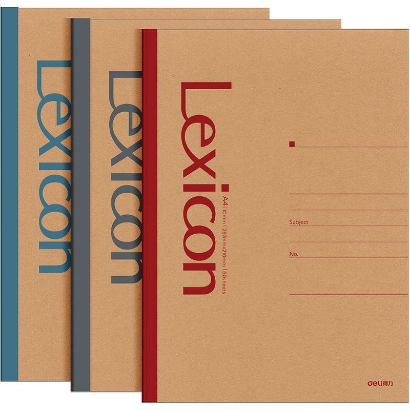 Тетрадь A4 100л линейка на сшивке Deli картонная обложка 'Lexicon' 3 цвета ассорти