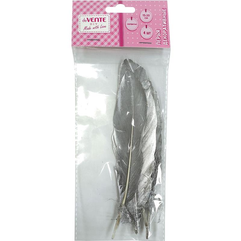 Перья декоративные deVENTE натуральные гусиные h15-20см   4шт Серебристые