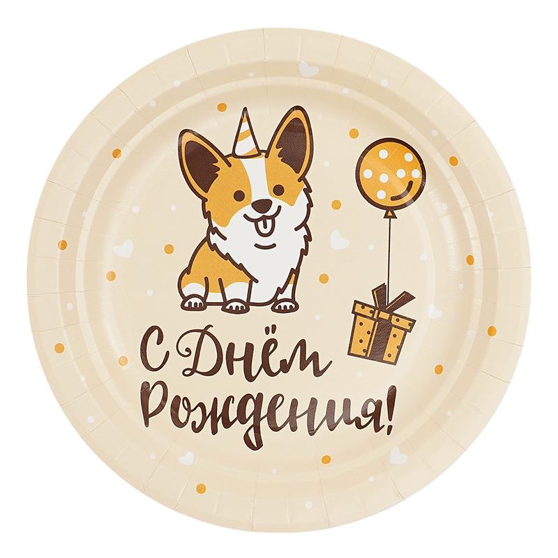Праздничные тарелки "С днем рождения" Веселый корги идеально украсят праздничное мероприятие. Тарелки подходят как для холодных, так и горячих блюд.