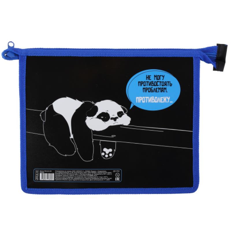 Папка для тетрадей A5 Кокос 1 отделение на молнии пластиковая 'Панда'
