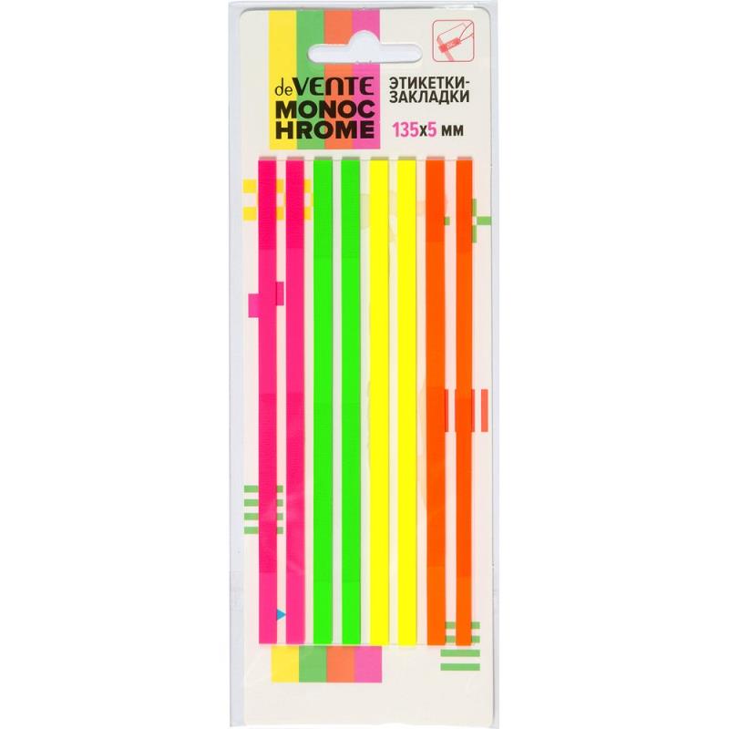 Набор самоклеящихся этикеток-закладок deVENTE 'MonoChrome' пластиковые полупрозрачные, разноцветные, 5 х135м 4 x2х20 листов,в картонном блистере.