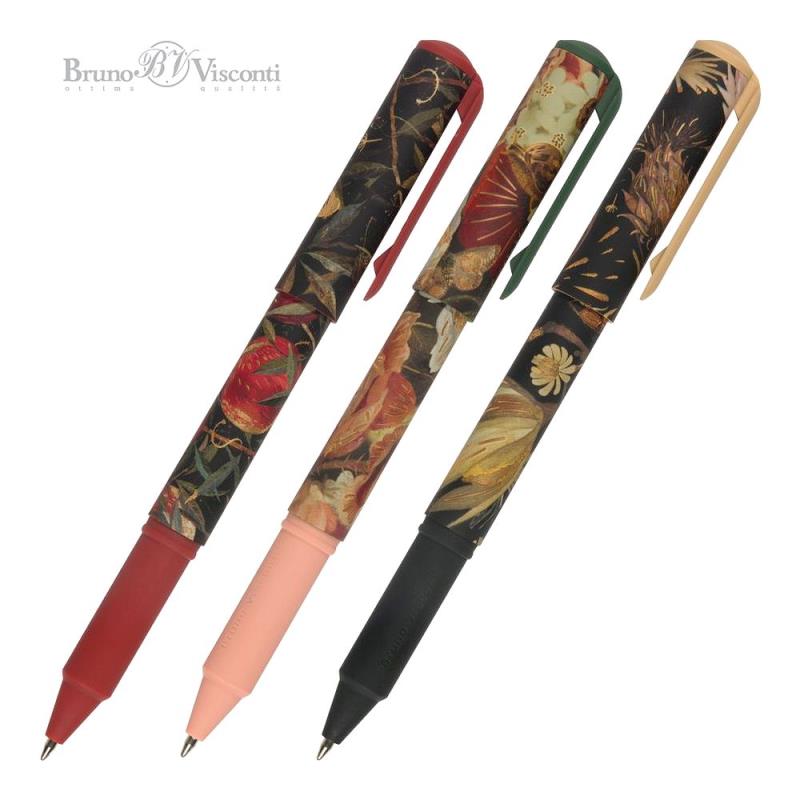 Ручка шариковая BrunoVisconti® 0.7мм 'DreamWrite' 3 дизайна 'Flora' 'Black night' синяя в тубе
