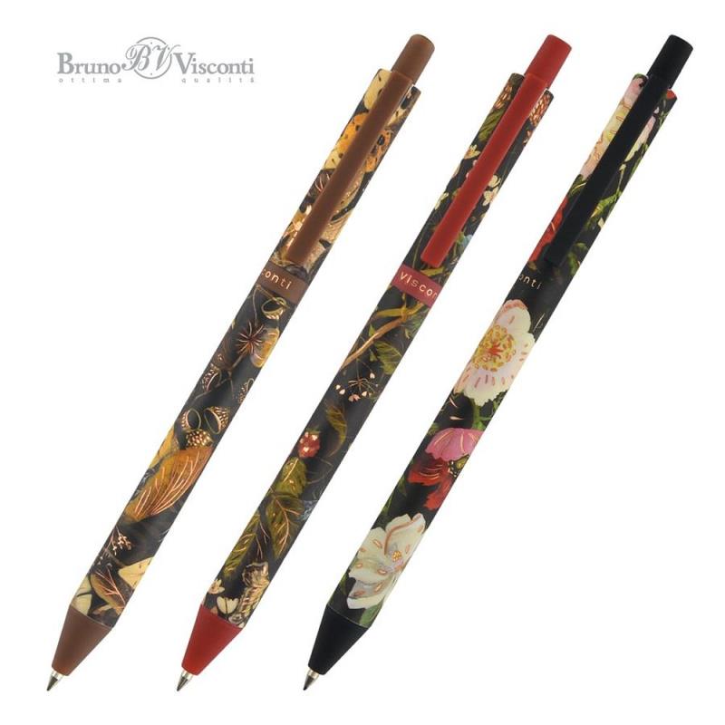 Ручка шариковая автоматическая BrunoVisconti® 0.5мм 'ArtClick' синяя 3 дизайна 'Flora' Black night