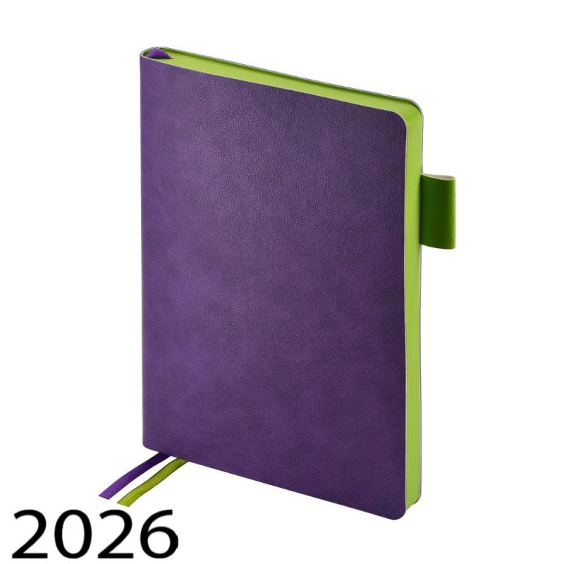 Дополнительную привлекательность добавляют ежедневнику контрастный тонированный обрез и два ляссе в тон обрезу и обложки.