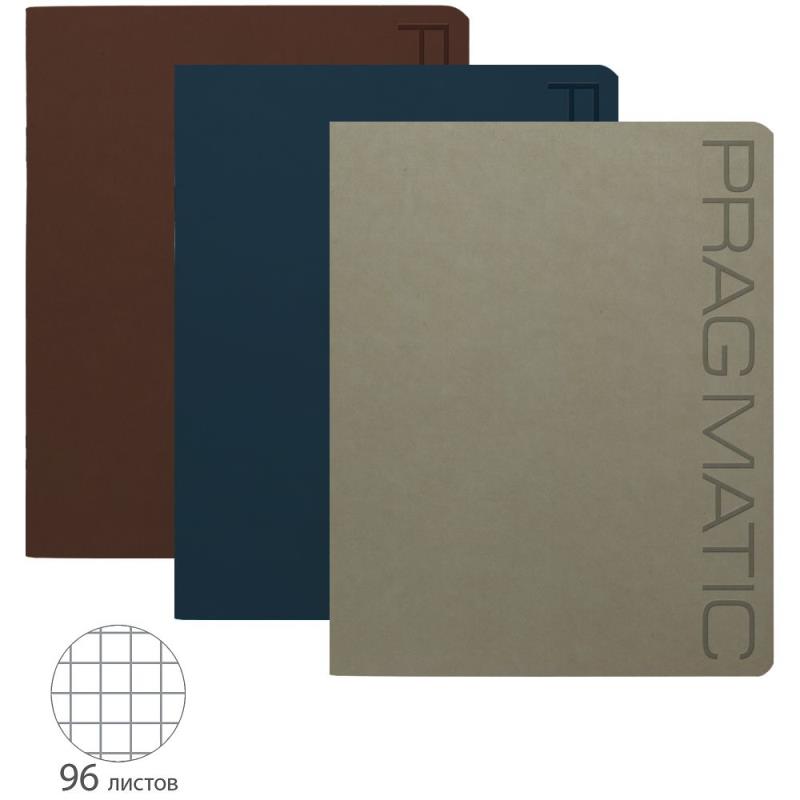 Обложки тетрадей 'Pragmatic' представлены в трех цветовых решениях: коричневый, черный, серый. Вертикальная надпись с названием серии выделена рельефным тиснением.