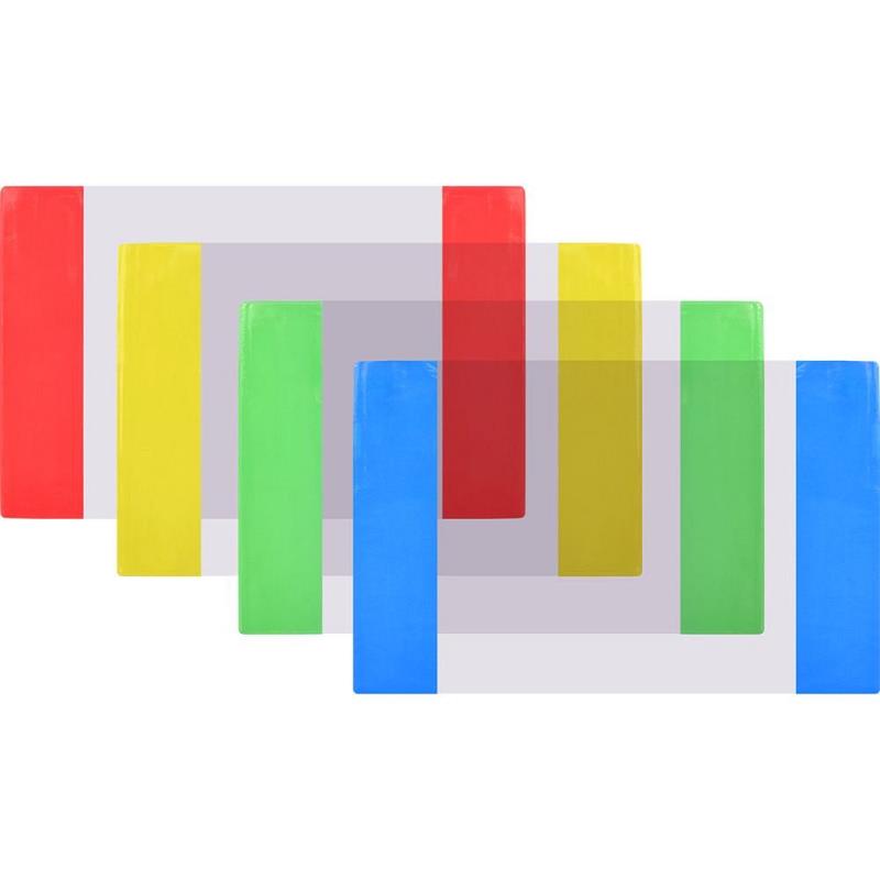 Обложка для тетрадей шириной 165-167мм из плотного прозрачного ПВХ с цветными клапанами.