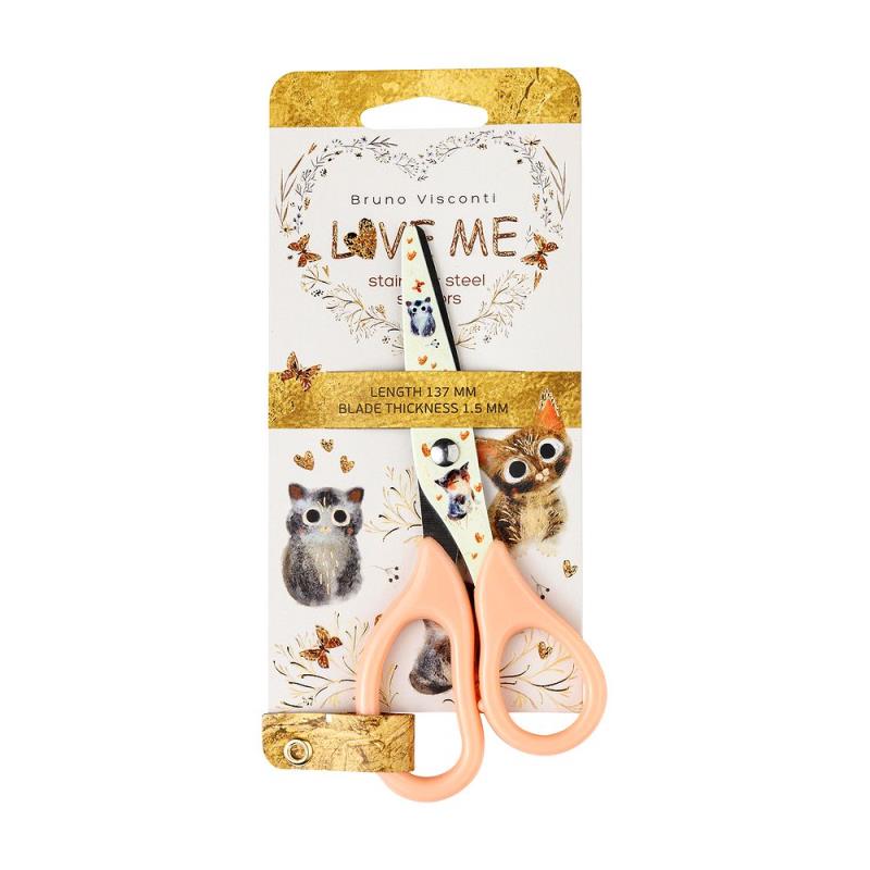 Стильные детские ножницы с оригинальным принтом на лезвиях из серии "LOVE ME" станут отличным дополнением к канцелярским предметам этой коллекции.