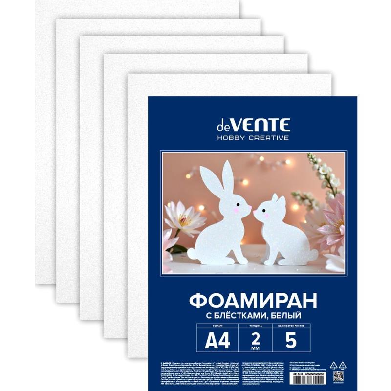Фоамиран глиттерный 21х30см  2мм deVENTE белый  5л