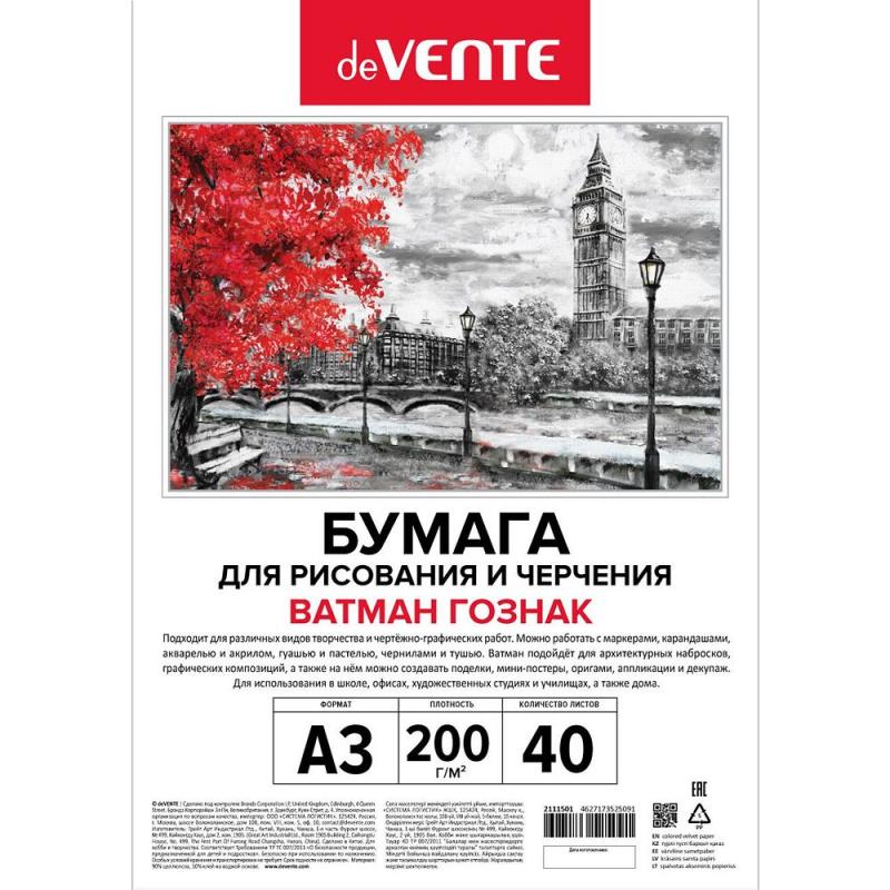Бумага для черчения A3  40л 200г deVENTE 'Гознак' коробке