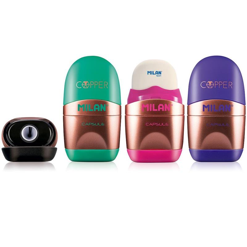 Комбинация точилки для карандашей с контейнером и ластика дизайна 'Медная серия'