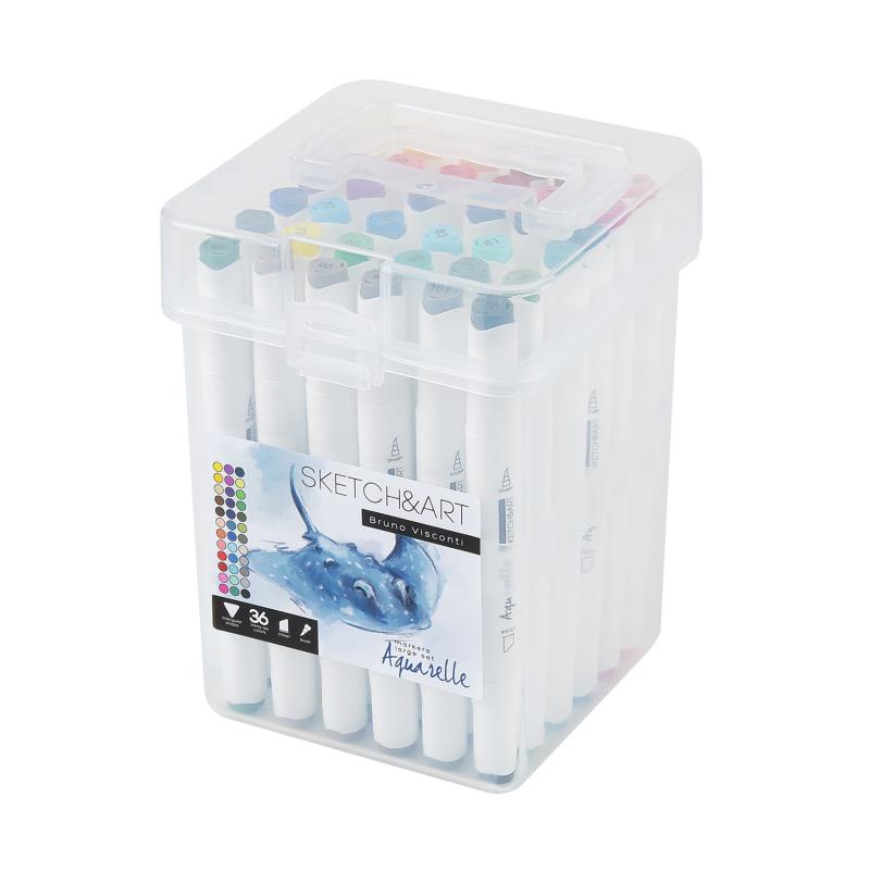 Маркеры акварельные BrunoVisconti® Sketch&Art 36цв двусторонние в пластиковом пенале