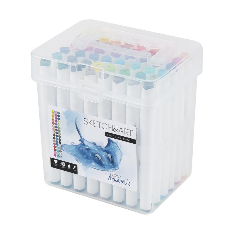 Набор акварельных маркеров "Sketch&Art" - это безграничные возможности для вашего творчества. В составе набора 24 маркеров, которые имеют сразу два пишущих узла из износостойкого волокна: один - клиновидной формы, другой - в формк кисточки. А это значит, что толщина линии письма может варьироваться от 1 до 7 мм, что идеально подходит для раскрашивания, леттеринга, рисования эскизов, иллюстрирования, работы в смешанных техниках. Яркие, насыщенные цвета легко смешиваются, наслаиваются и размываются водой. Быстросохнущие пигментные чернила на водной основе не имеют запаха. Корпус маркера имеет трехгранную эргономичную форму, что создает дополнительный комфорт в работе.