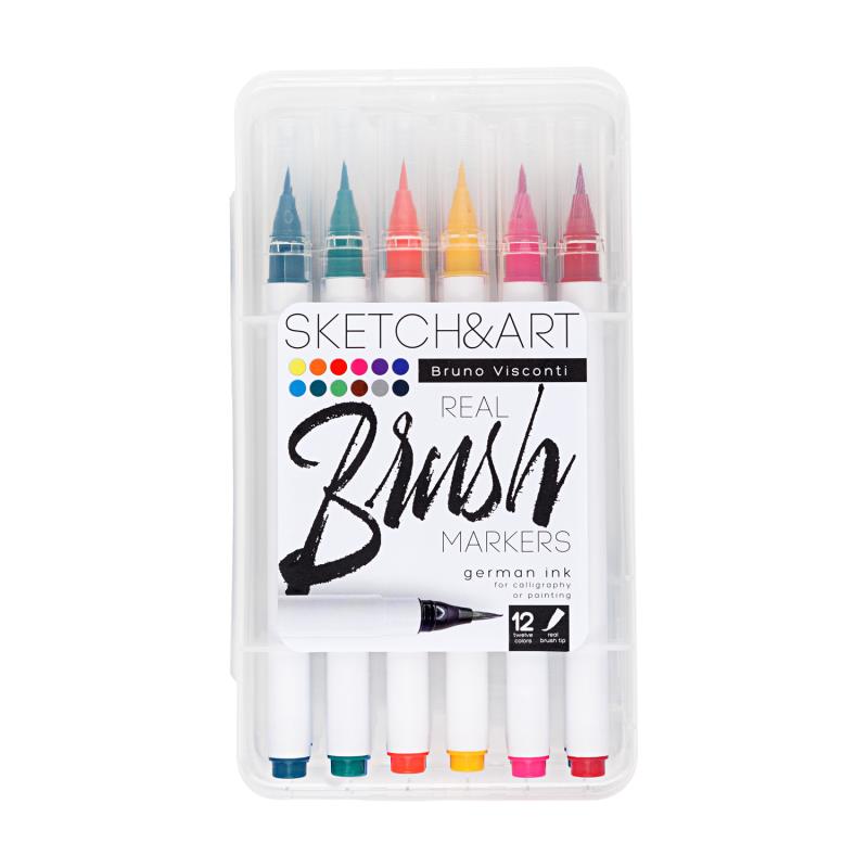 Набор из 12 акварельных маркеров «SKETCH&ART» с мягкой кистью – отличный выбор для создания скетчей, набросков, комиксов и городских зарисовок. Благодаря мягкой кисти и насыщенным цветам маркеры прекрасно подходят для прорисовки мелких деталей, изящной каллиграфии и придания объема акварельным работам. Каждый маркер оснащен кистеобразным наконечником из прочного волокна, позволяющим рисовать линии шириной от 1 до 5 мм. Быстросохнущие нетоксичные чернила на водной основе не имеют запаха, легко размываются водой и смешиваются на палитре, создавая при этом новые, уникальные цветовые сочетания. Итоговое изображение получается настолько реалистичным, что его практически невозможно отличить от работ, написанных реальной кистью. Маркеры упакованы в пластиковый бокс, что обеспечивает удобство их хранения и транспортировки.