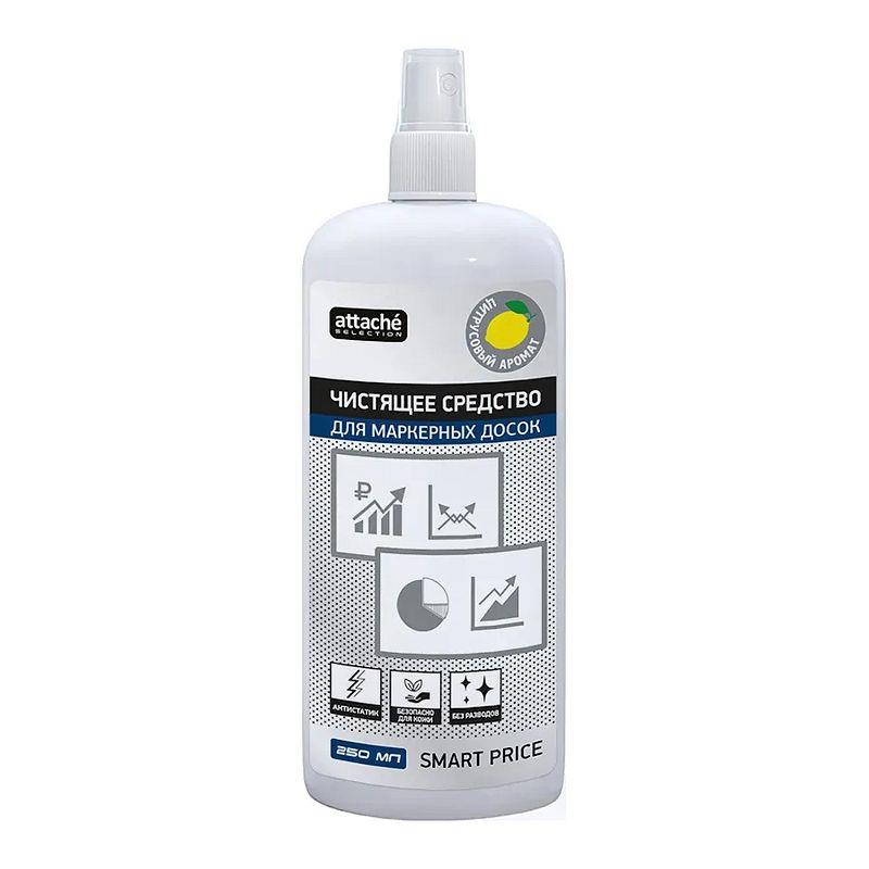 Спрей Attache Selection 'Smart Price' с антистатическим эффектом предназначен для очистки магнитно-маркерных досок от следов сухого маркера, пыли, отпечатков пальцев и других загрязнений с помощью сухих стирающих салфеток и губок для магнитно-маркерных досок.