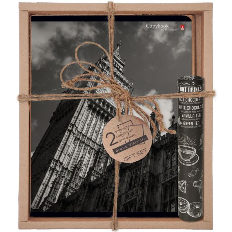 Подарочный набор из автоматитческой шариковой ручки и двух дизайнерских тетрадей BrunoVisconti®.