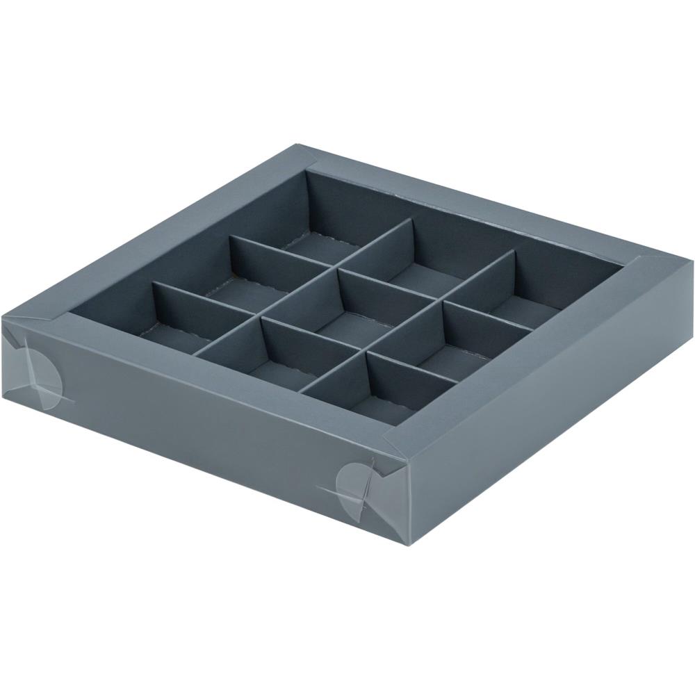 Коробка для конфет на  9шт 15.5х15.5х3см графитовая с пластиковой крышкой