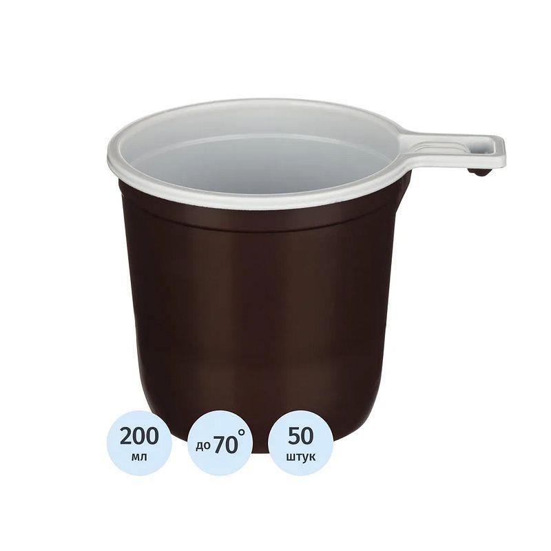 Чашка для кофе одноразовая 200мл  50шт Комус 'Бюджет' PP коричневая