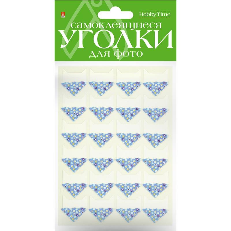 Уголок для фотографий самоклеящийся Hobby Time 24шт 'Цветы голубые' в блистере
