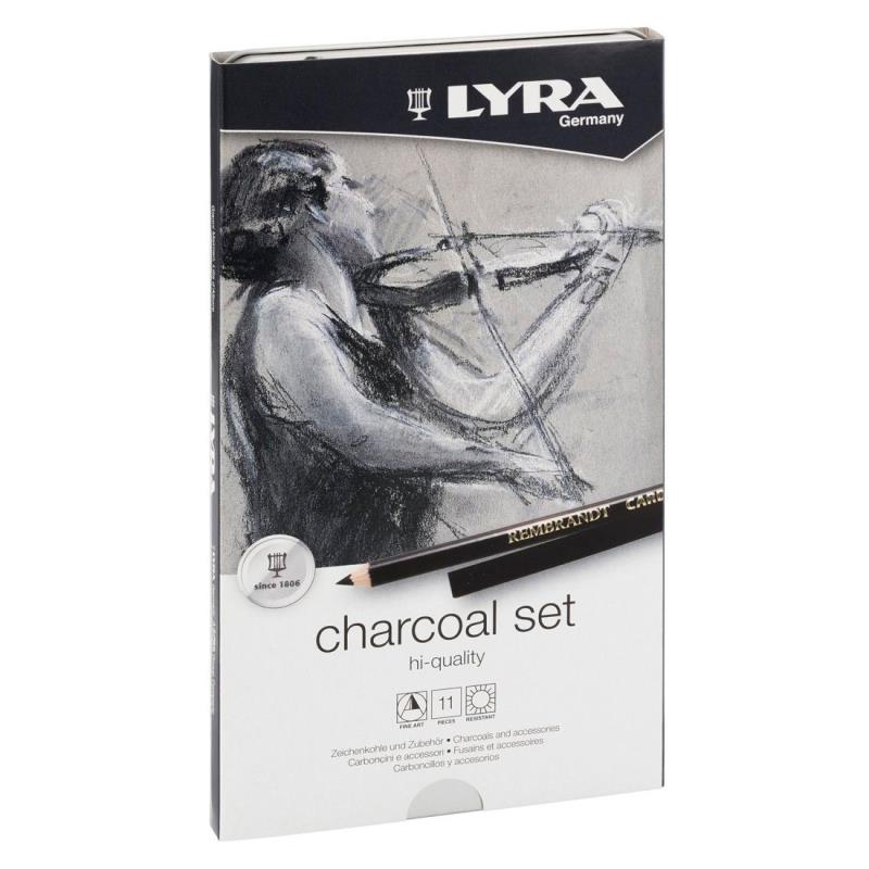 LYRA CHARCOAL SET - набор инструментов, материалов и графитовых карандашей с особо прочными грифелями. Идеально подходит для графики, рисования и монохромных эскизов. Так как штрихи легко смешиваются и растушевываются, рекомендуется использовать ластик и фиксатив. Карандаши поставляются в металлической коробке.