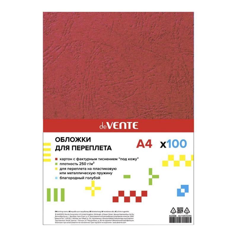 Обложка картонная A4  250г deVENTE 'Кожа' красная 100шт