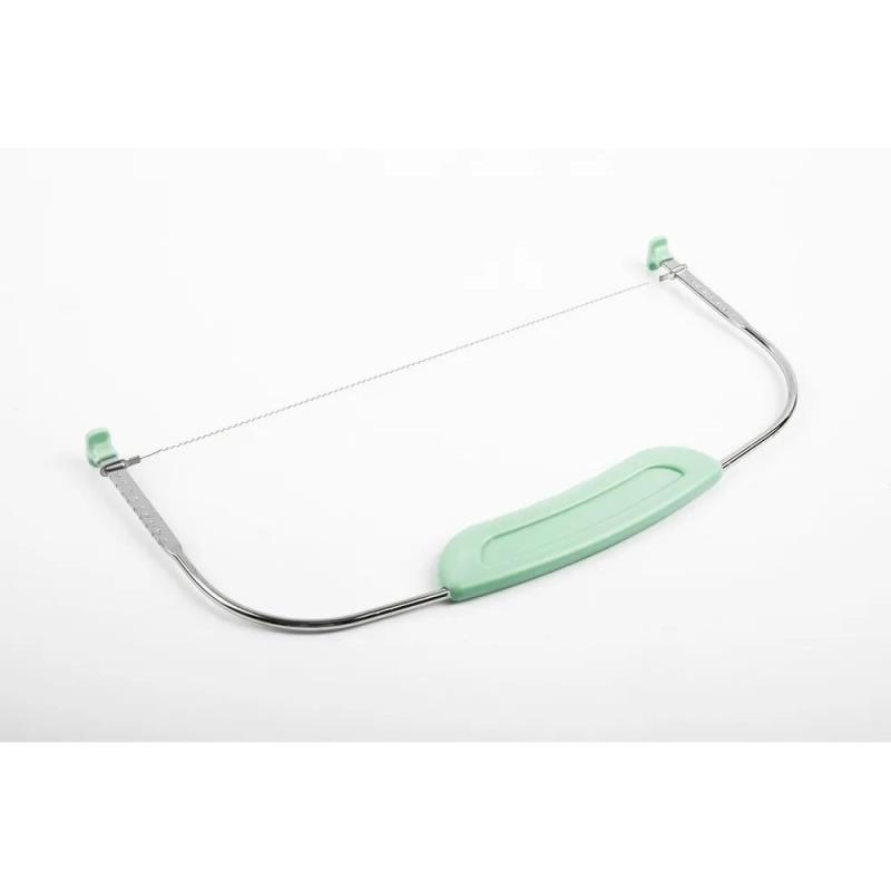 Аккуратная нарезка бисквитной основы торта — важная и кропотливая процедура. Работу облегчит профессиональный нож-струна. Лезвия не требуют заточки и при необходимости снимаются. Изделие легко очищается в посудомоечной машине.