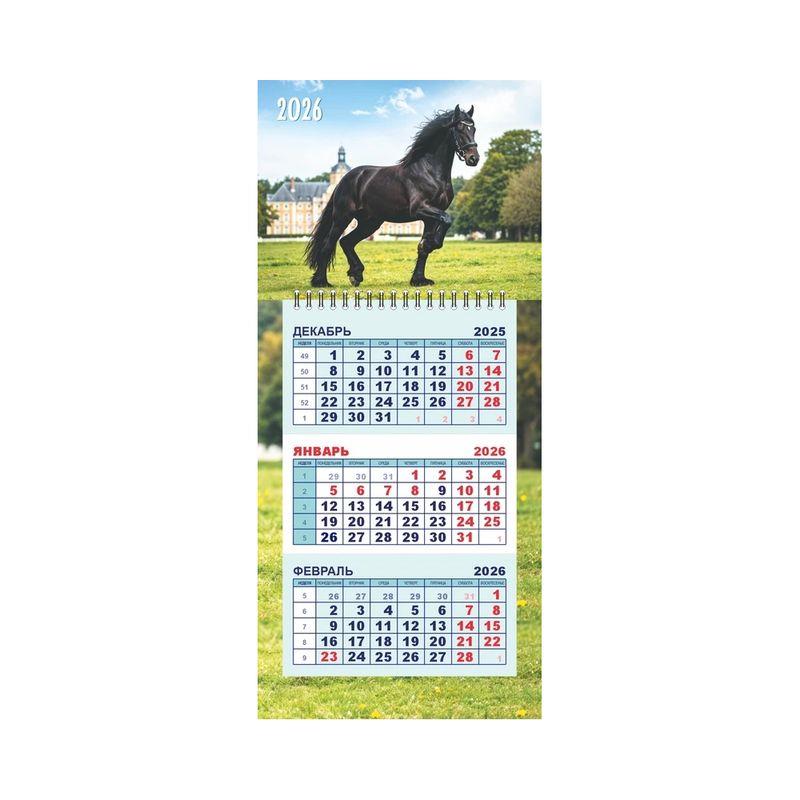 Календарь настенный 2026 квартальный 1-блочный 20х44см Lamark Мини  'Символ Года. Вороной' на гребне