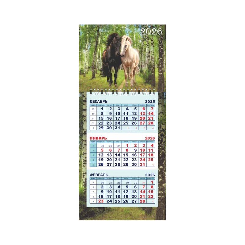 Календарь состоит из красочного постера и 1 блока с сеткой на 3 месяца. Блок включает 12 листов закрепленных на металлическом гребне.