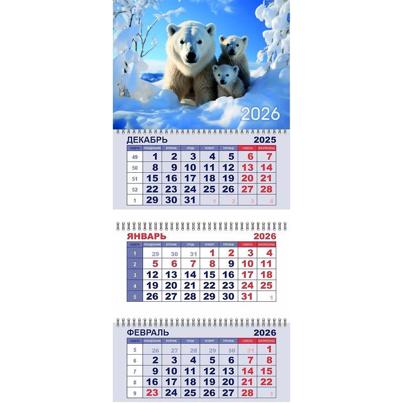 Календарь состоит из красочного постера и трех блоков. Каждый блок включает 12 листов офсетной бумаги закрепленных на металлическом гребне.
