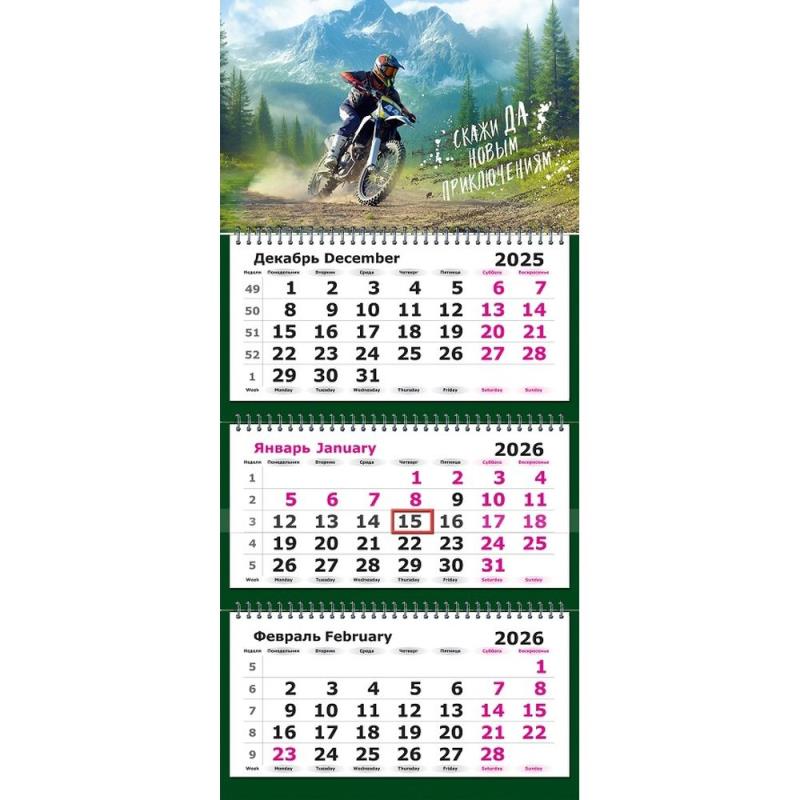 Календарь состоит из красочного постера и трех блоков. Каждый блок включает 12 листов офсетной бумаги закрепленных на металлическом гребне.