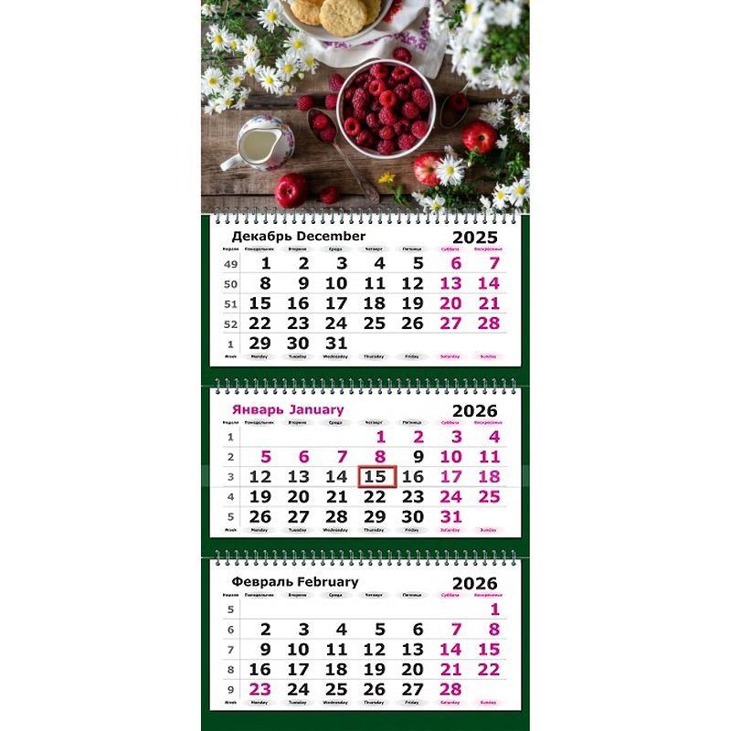 Календарь состоит из красочного постера и трех блоков. Каждый блок включает 12 листов офсетной бумаги закрепленных на металлическом гребне.