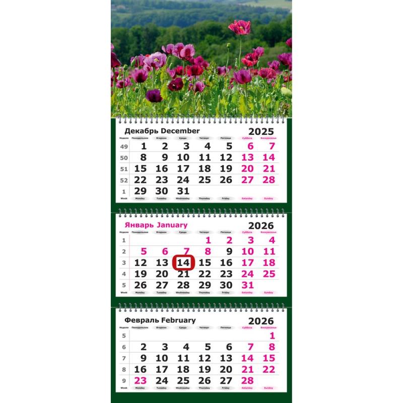 Календарь трехблочный состоит из красочного постера и трех блоков. Оснащен люверсом (металлическим кольцом) для подвешивания.