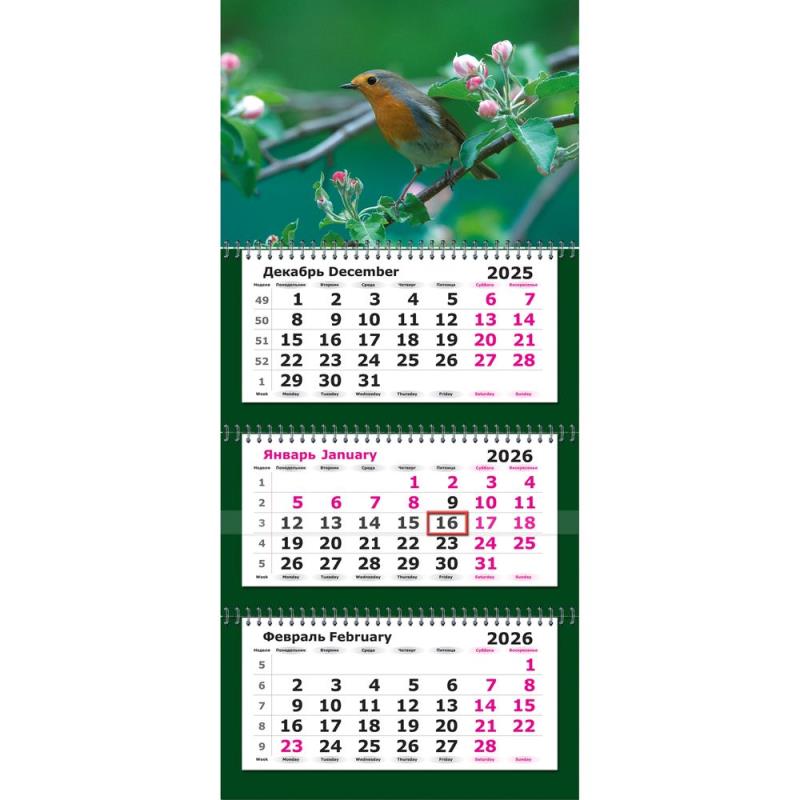 Календарь трехблочный состоит из красочного постера и трех блоков. Оснащен люверсам (металлическим кольцом) для подвешивания.