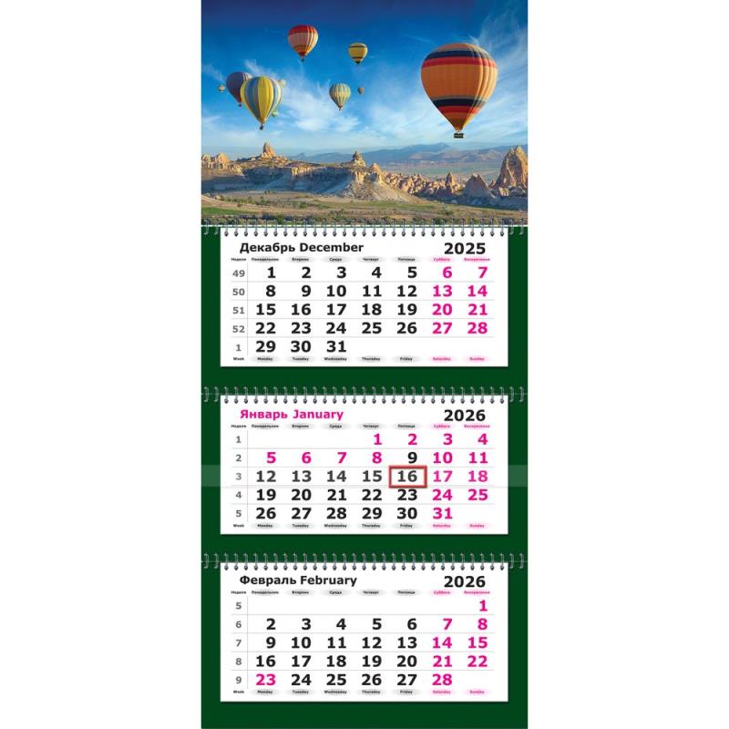 Календарь трехблочный состоит из красочного постера и трех блоков. Оснащен люверсам (металлическим кольцом) для подвешивания.