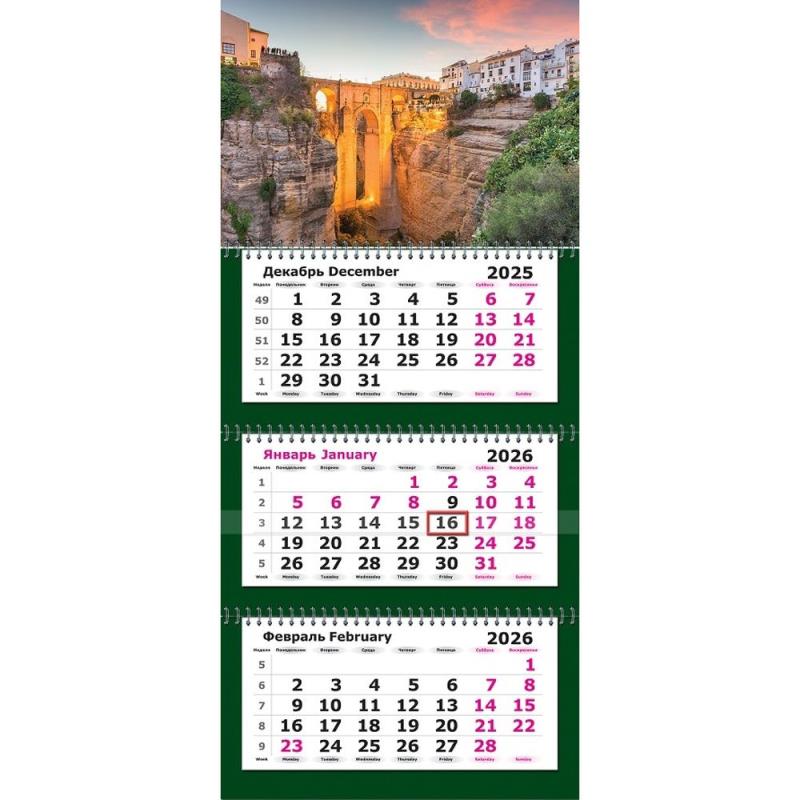 Календарь трехблочный состоит из красочного постера и трех блоков. Оснащен люверсам (металлическим кольцом) для подвешивания.