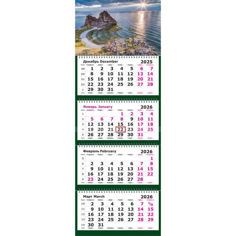 Календарь четырехблочный состоит из красочного постера и четырех блоков.