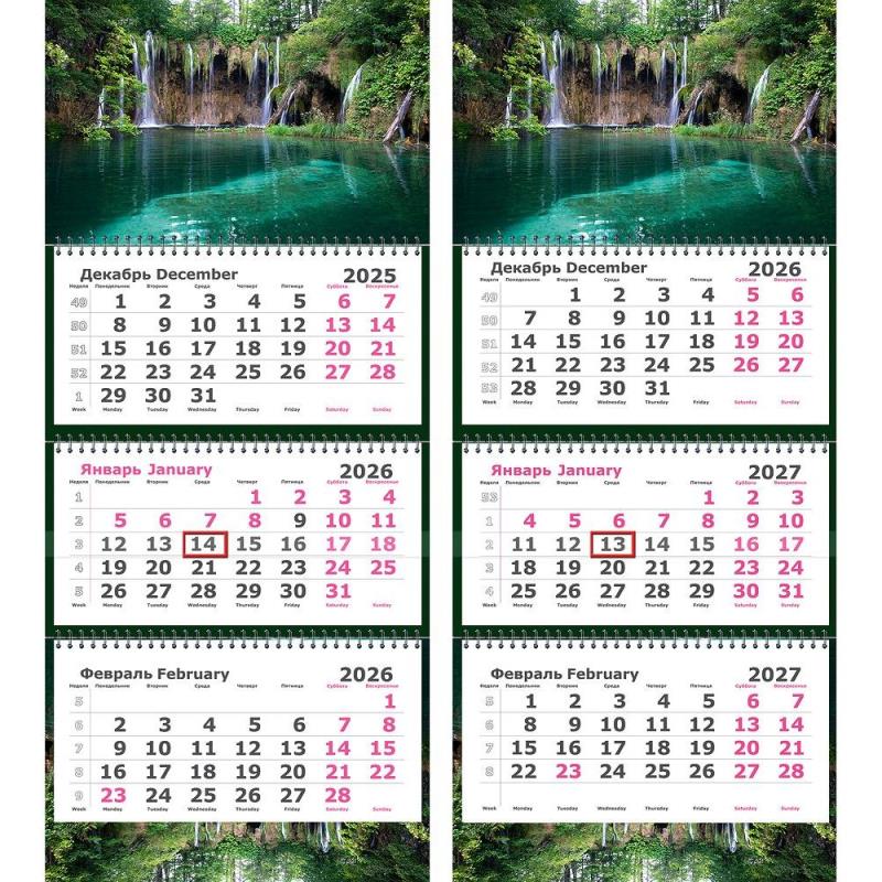Календарь трехблочный календарь «Перевертыш» на два года состоит из двух красочных постеров и трех блоков. Постеры оснащены люверсом (металлическим кольцом) для подвешивания.