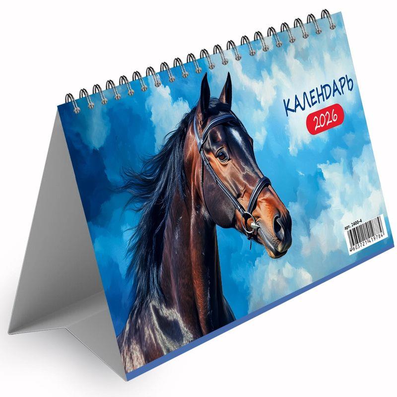 Календарь-шалашик настольный. На каждом листе — красочное изображение и календарная сетка на текущий месяц, а также миниатюрные сетки на предыдущий и последующий месяцы.