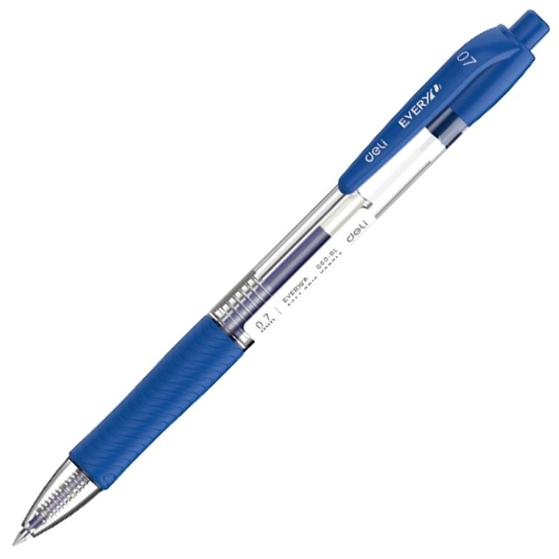 Автоматическая шариковая ручка Deli 'EveryU' с чернилами низкой вязкости для особо гладкого письма и мягкой резиновой манжетой для пальцев.